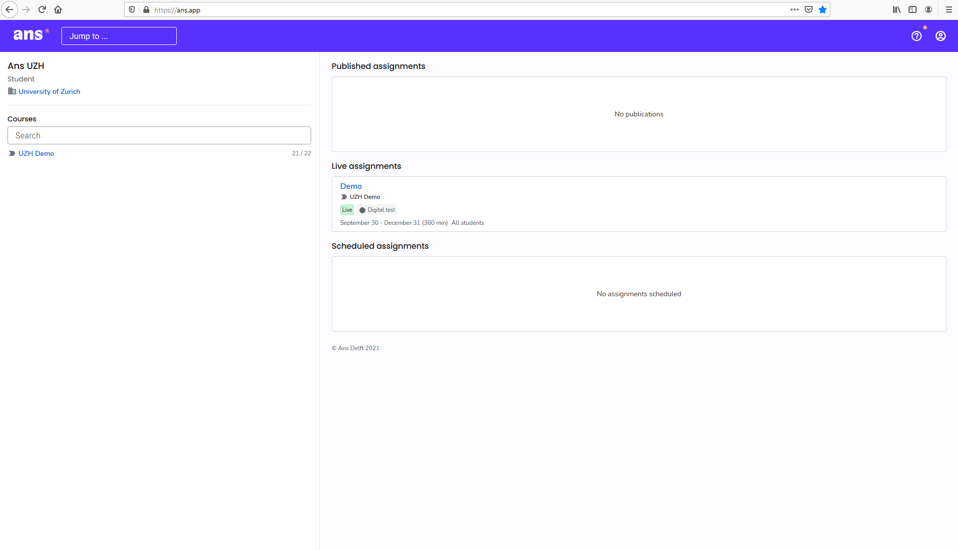 Wenn Sie sich auf Ans anmelden sehen Sie folgende Ansicht: